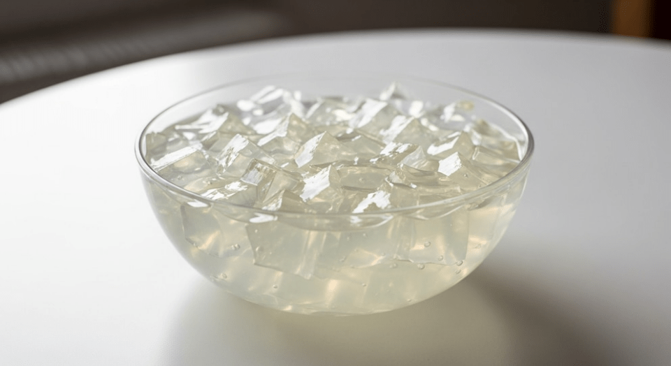 La gelatina sin sabor se obtiene a partir de la hidrólisis del colágeno presente en tejidos animales. Este proceso da lugar a un producto rico en proteínas, especialmente en los aminoácidos glicina y prolina, fundamentales para la estructura de la piel, los huesos y los tejidos conectivos.