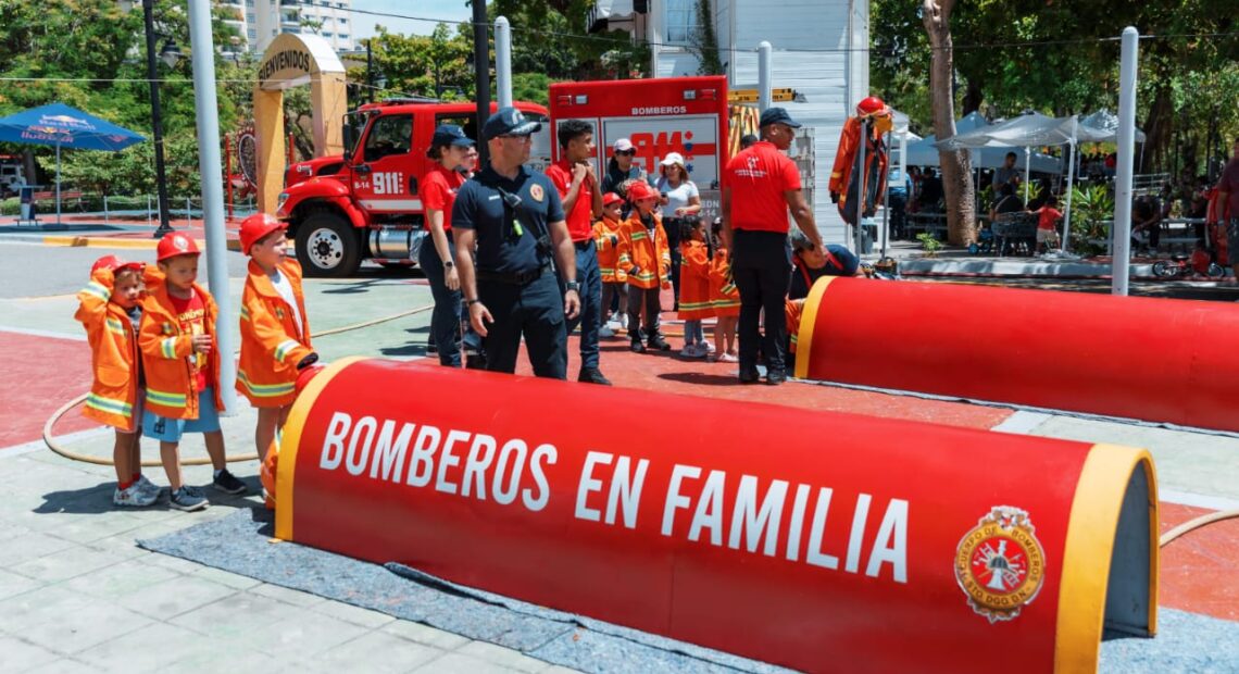Santo Domingo, DN – El Cuerpo de Bomberos del Distrito Nacional llenó de alegría a los asistentes del parque Iberoamérica con divertidas actividades para el disfrute de grandes y chicos durante la tercera edición de “Bomberos en Familia”.