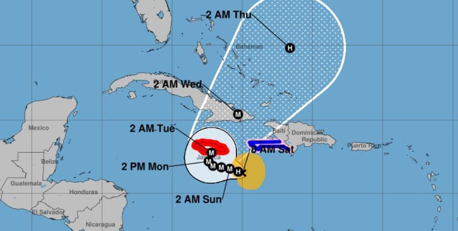 El organismo informó, que a las 8:00 a.m., de este sábado, la tormenta tropical Melissa se localizó a unos 375 kilómetros al suroeste de Puerto Príncipe, Haití, y a unos 260 km al sureste de Kingston, Jamaica. Se desplaza hacia el oeste/noroeste a unos 2 km/h y mantiene vientos máximos sostenidos de 110 km/h, con ráfagas superiores.