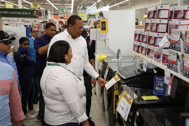 Santo Domingo. – El director ejecutivo del Instituto Nacional de Protección de los Derechos del Consumidor (Pro Consumidor), doctor Eddy Alcántara, encabezó hoy un amplio recorrido por establecimientos comerciales del Gran Santo Domingo, Santiago y otras provincias, para supervisar el cumplimiento de las ofertas que se vienen ofreciendo con motivo de la celebración de Black Friday o Viernes Negro.