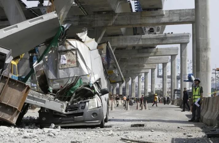 Según informaron los equipos de rescate y bomberos de Tailandia en su cuenta de Facebook, la grúa se desplomó alrededor de las 9:15 hora local (2:15 GMT) por motivos aún desconocidos en una obra de la autovía de Rama II en la provincia de Samut Sakhon, a las afueras de Bangkok, impactando con dos automóviles.