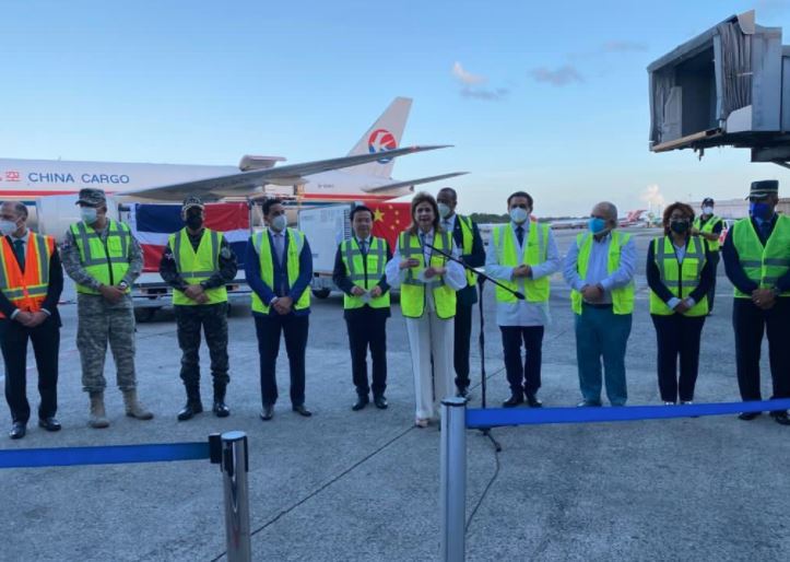 Santo Domingo.- Una comisión del gobierno dominicano encabezada por la vicepresidenta Raquel Peña recibió la tarde de este miércoles un lote de 1 millón 50 mil dosis de vacunas anti COVID-19, procedentes de la República Popular China.