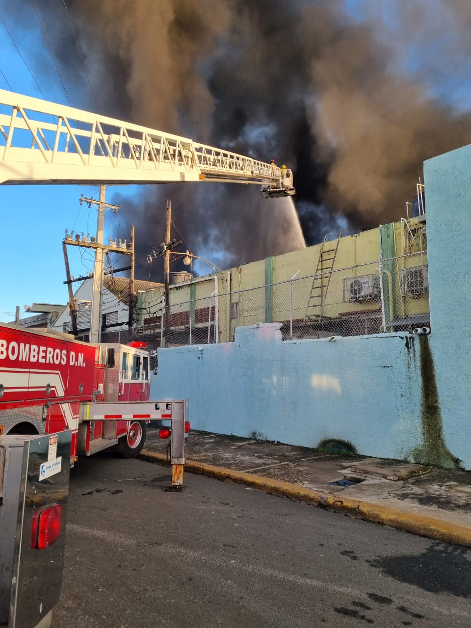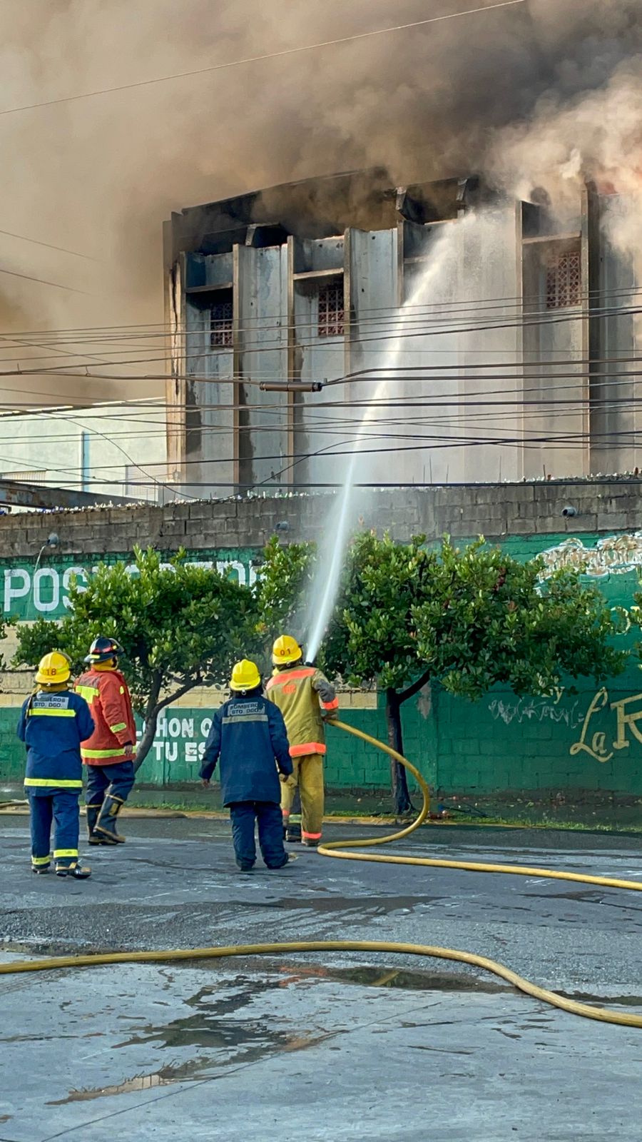 Desde tempranas horas de la madrugada el Cuerpo de Bomberos del Distrito Nacional y la alcaldesa Carolina Mejía supervisando los trabajos.