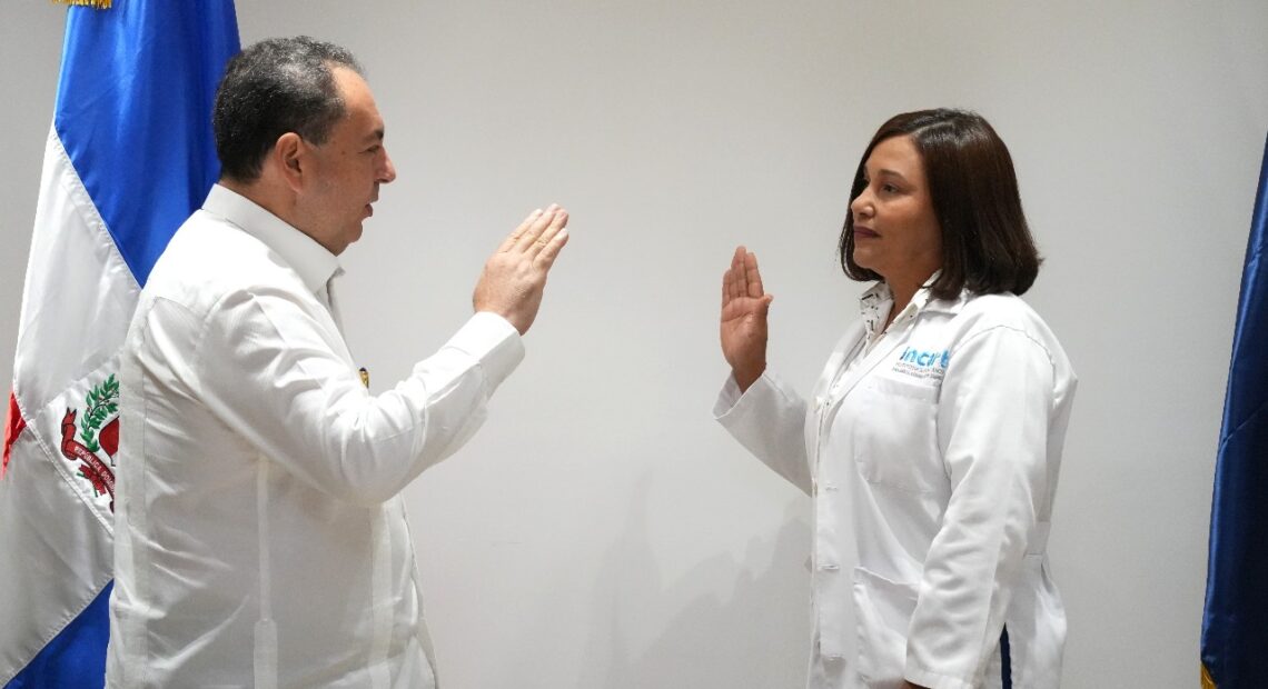 Santo Domingo. – El titular del Servicio Nacional de Salud, doctor Mario Lama, junto al director de la regional Ozama, doctor Edisson Feliz, juramentó este martes a la doctora Bianny Rodríguez Valdez como nueva directora del Instituto Nacional del Cáncer Rosa Emilia Sánchez Pérez de Tavares (INCART).