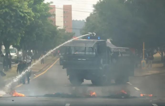 La Policía Nacional de Honduras dispersó esta noche en Tegucigalpa con cañones de agua a un nutrido grupo de militantes del gobernante Partido Libertad y Refundación (Libre, izquierda), que protestaban frente al centro de resguardo de material electoral de las elecciones generales del pasado 30 de noviembre.