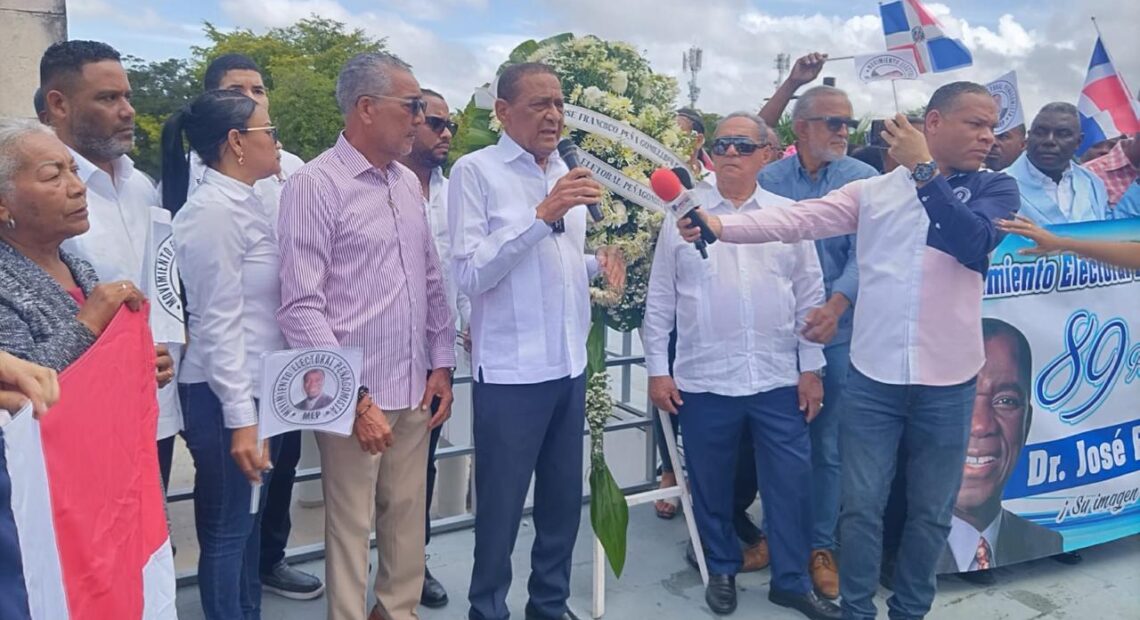 Santo Domingo, D.N.- El Movimiento Electoral Peñagomista (MEP), presidido por Rafael “Fiquito” Vásquez, conmemoró este jueves el 89 aniversario del natalicio del líder histórico dominicano José Francisco Peña Gómez con una ofrenda floral y un acto de recordación en la Plazoleta que lleva su nombre, ubicada en el Puente Francisco del Rosario Sánchez, conocido popularmente como Puente de la 17.