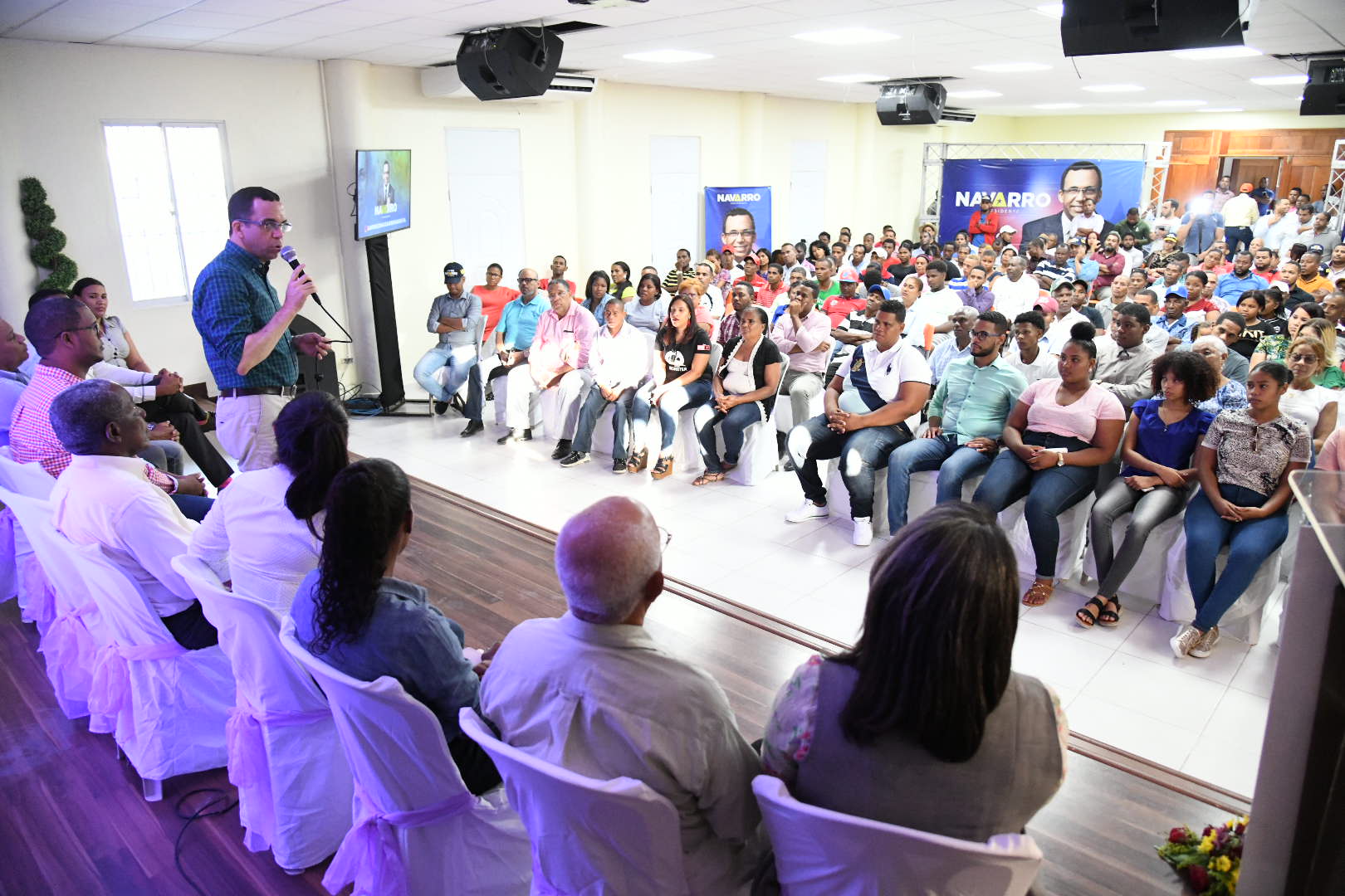 Acompañaron a Navarro en la mesa principal José Emilio Peña, presidente provincial del PLD; José Darío Cepeda y Claudia Mercedes, dirigentes del PLD; Jefrey Pérez, empresario de la región y Deivy Luciano, coordinador de la actividad.