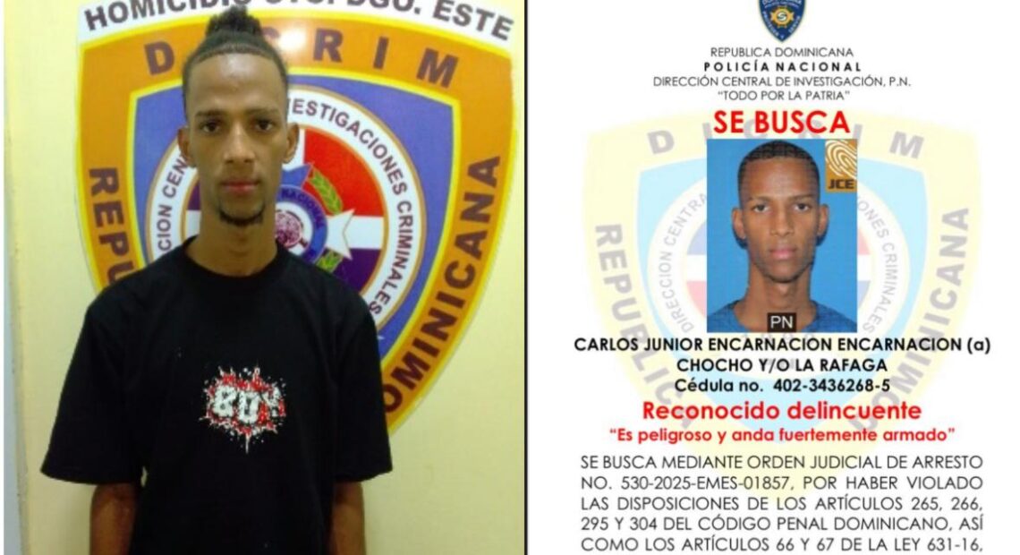 La Policía Nacional informó el apresamiento de Carlos Junior Encarnación, apodado “La Ráfaga”, de 21 años, quien era buscado por su implicación en la muerte de Gary de la UCI (a) Figueroa, ocurrida el pasado domingo 28 de julio en el sector El Almirante, Santo Domingo Este.