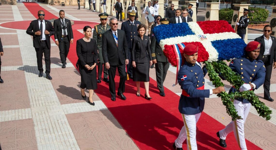 Posteriormente, el presidente Luis Abinader, acompañado de la vicepresidenta Raquel Peña y la primera dama Raquel Arbaje, depositó una ofrenda floral en el Altar de la Patria, en el marco de la conmemoración del 182.º aniversario de la Independencia Nacional y el 163.º aniversario de la Restauración de la República.