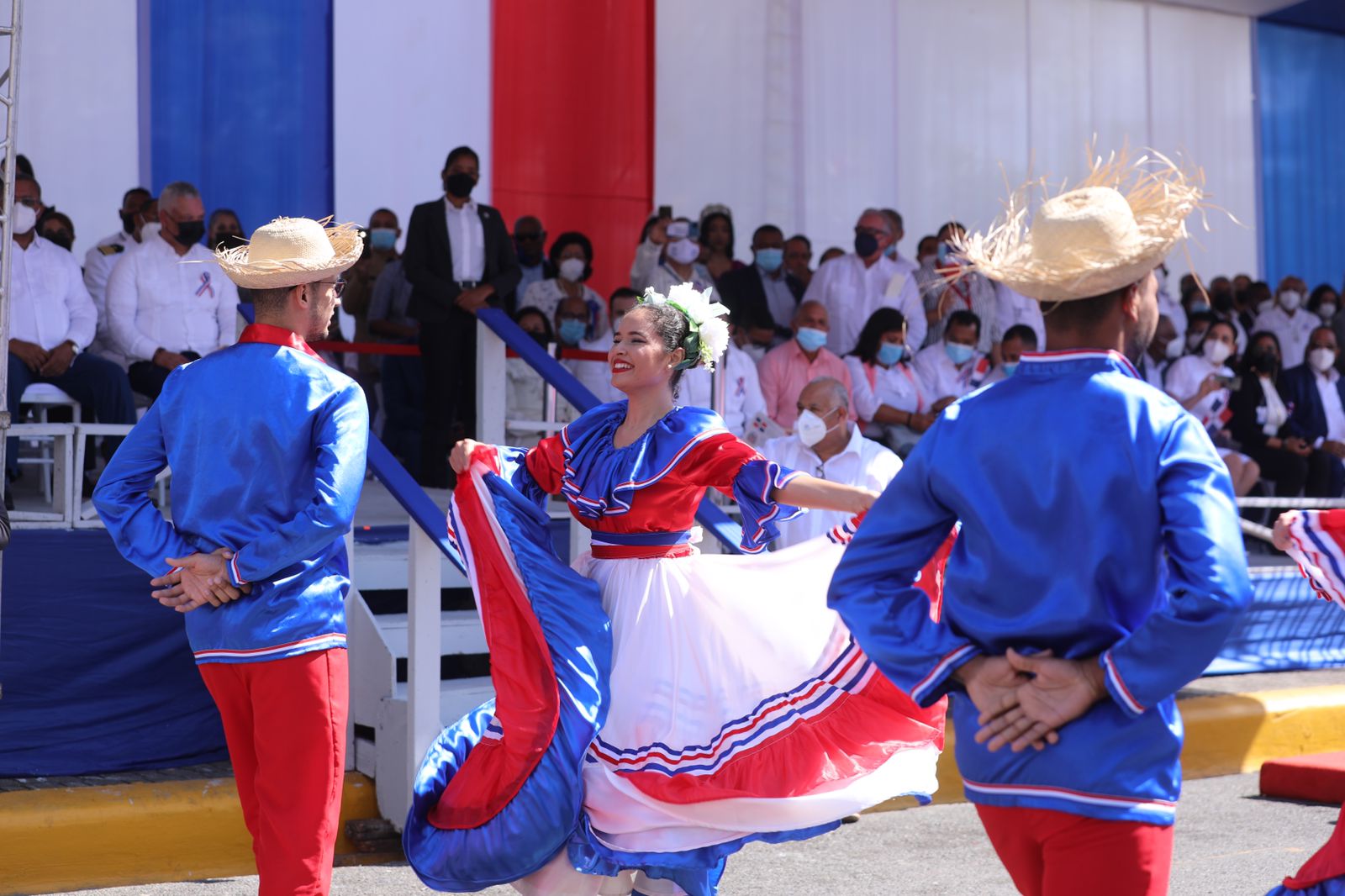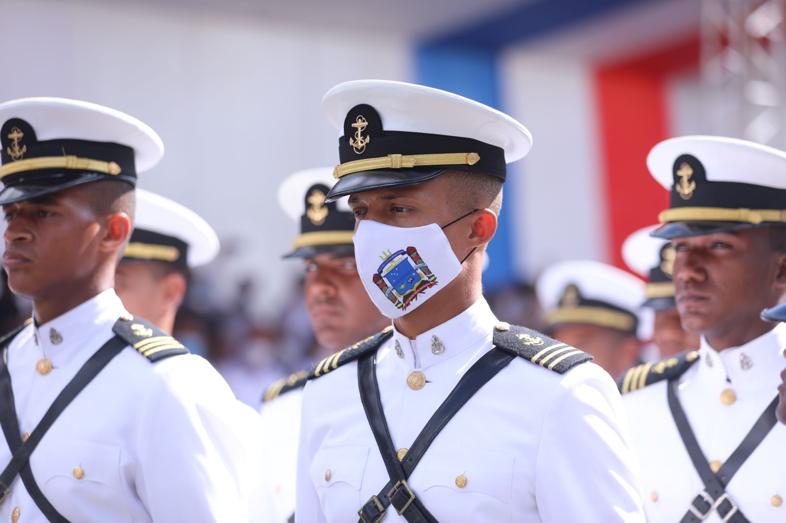 Durante la actividad patriótica 80 cadetes y guardiamarinas, declamaron el himno nacional dominicano en una poesía coreada, dirigida por el general de brigada Servio Antonio Uribe Vizcaíno, ERD.