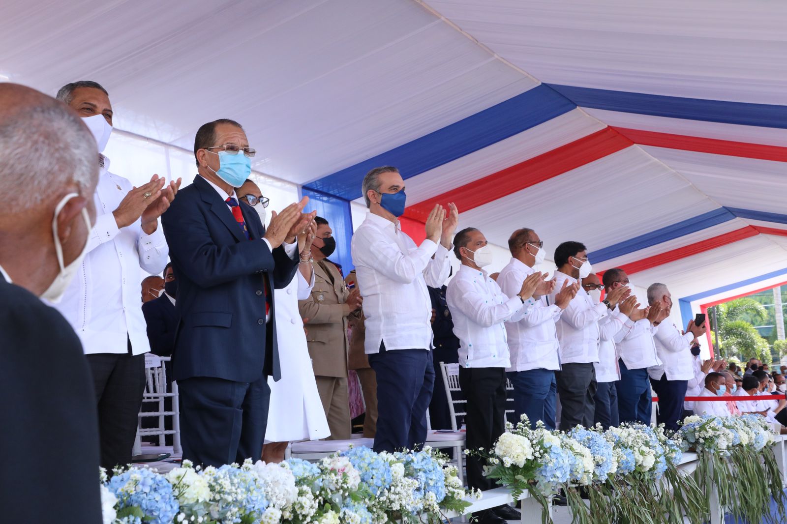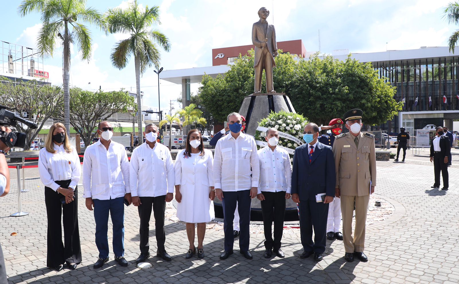 Al finalizar el acto, el presidente Abinader depositó una ofrenda floral en la Estatua de Juan Pablo Duarte, en el parque Duarte.