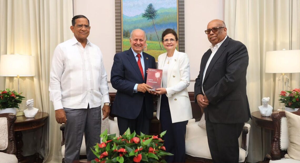 Se aprovechó el encuentro para entregar a la vicepresidenta Raquel Peña un ejemplar del libro Capital y Humanidad, de la autoría de los economistas doctores Jacqueline Boin y José Serulle Ramia.